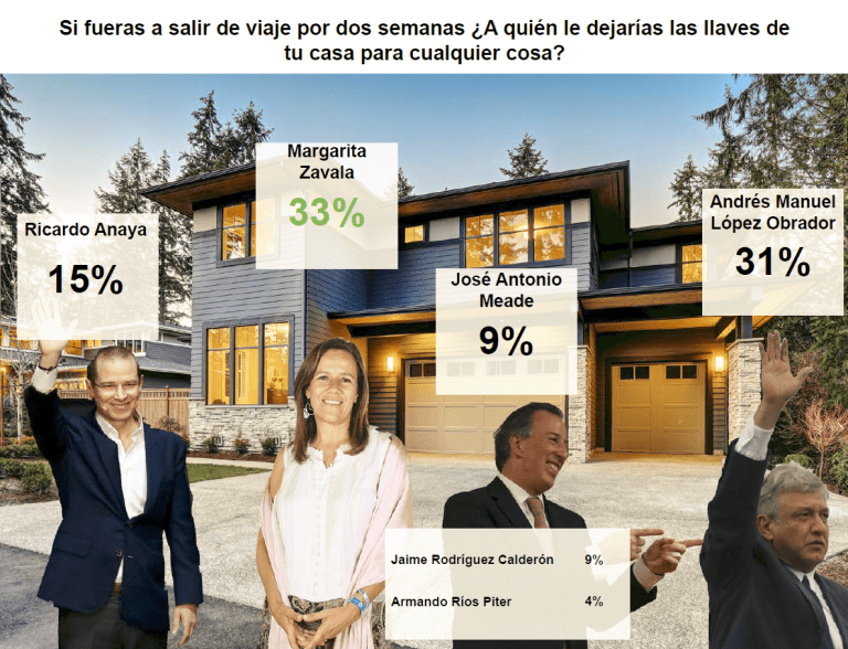 El 33% aseguró que le confiaría las llaves de su casa a Margarita Zavala.