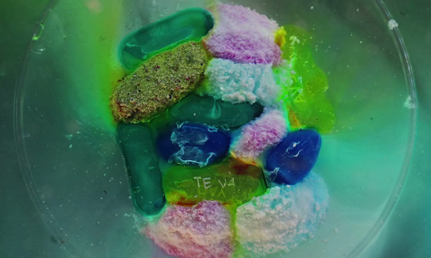 Fantástica imagen de las píldoras disolviéndose en agua mientras se graba con un macro timelapse por el mismísimo Ben Ouaniche de Macro Room