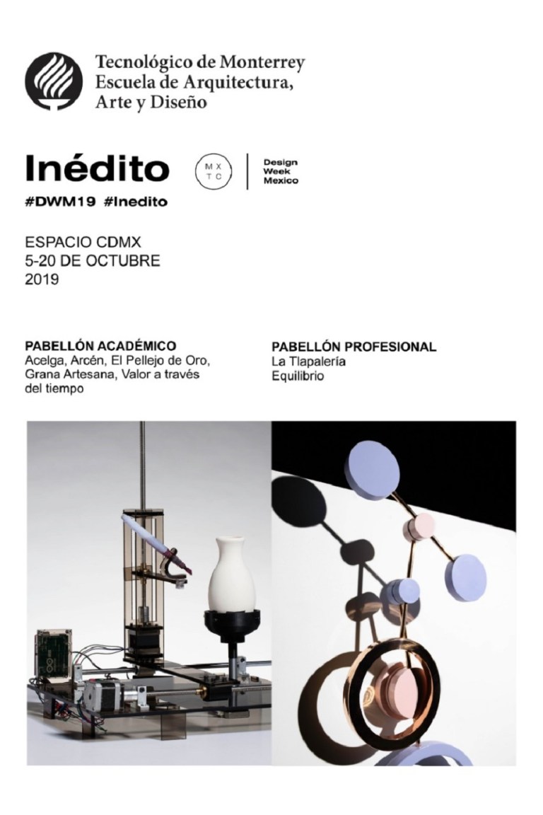 Respecto a la participación en Design Week Mexico, la Escuela de Arquitectura Arte y Diseño también contará con dos exhibiciones dentro del programa Inédito. El Pabellón Académico presentará los proyectos Acelga, Arcén, El Pellejo de Oro, Grana Artesana y Valor a través del tiempo.