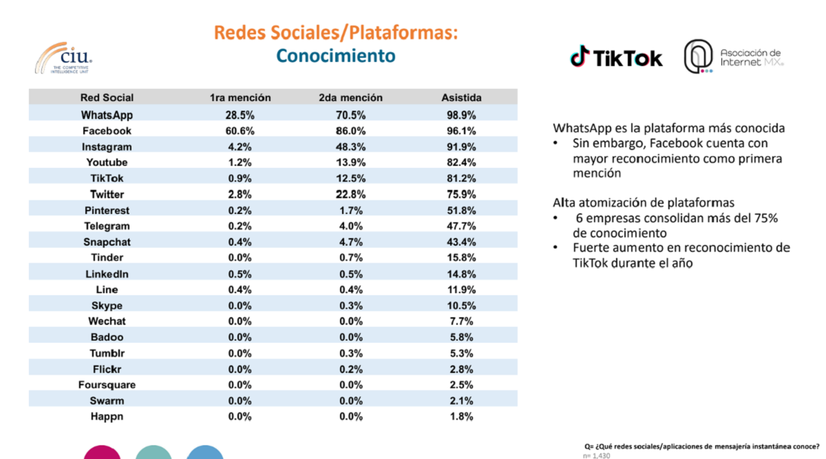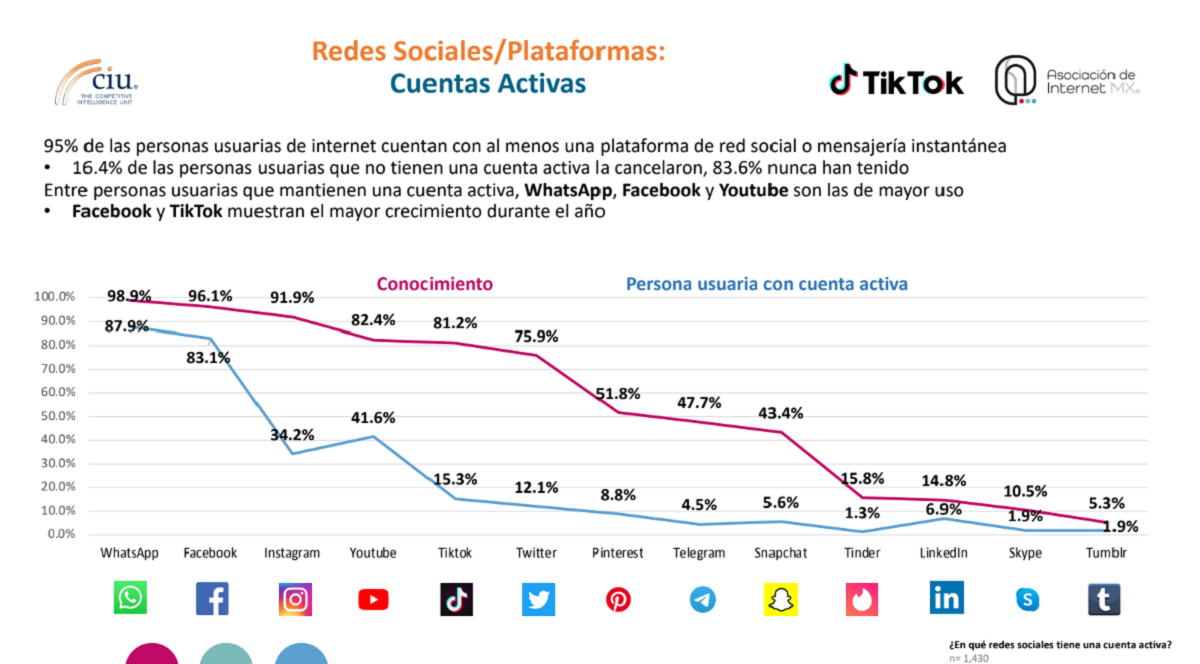 - TikTok es la red con mayor crecimiento en el año.