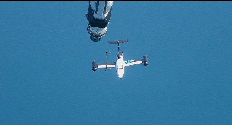 Sobre las aguas del Golfo de Cádiz, el control del dron pasó de una estación terrestre al A310 MRTT, guiando de forma autónoma al DT-25 hasta la posición de repostaje en vuelo.